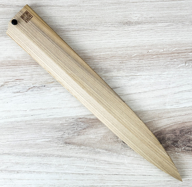 The CKTG Yanagiba Saya 210mm is a traditional wooden sheath designed to protect and store 210mm yanagiba knives we carry. These single-bevel blades have unique profiles and precise geometries, so proper fit is especially important to ensure the knife seats cleanly and safely inside the saya. This sheath offers secure protection while preserving the clean, refined look of your knife during storage or transport.