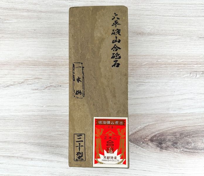 This Ohira Tomae is one of the most popular natural finishing stones on our site. We get these stones from the Imanishi stone company in Kyoto and Mr. Imanishi evaluates these stones and grades them before putting his stamp on them. This stone is fine with an approximate grit rating of about 8-10K. This one will last a long time and is very thick. Cuts fast and has a nice hard feel to it. Leaves a great finish. Size is 206mm x 75mm x 41mm. Mr. Imanishi grades this stone as High Quality and it was mined in the early 1970s. It's been in his basement ever since. This stone weighs about 3lbs 10oz.