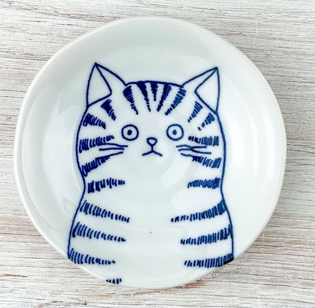 This blue and white Cat Face plate is a charming little accent piece made in Japan. The expressive feline design brings personality to the table while still fitting beautifully into a classic blue and white collection. It is playful, tasteful, and easy to mix with other Japanese ceramics.