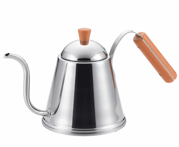 The precision gooseneck spout is designed for controlled, steady pouring so you can dial in your bloom and extraction with confidence. The thin stainless body responds quickly to heat and works on gas, electric, halogen, radiant, and sheathed heating surfaces. The recommended 0.6L working capacity gives you ideal control and stability while pouring. Do not overfill, and keep the wooden handle and knob away from direct flame to prevent scorching.