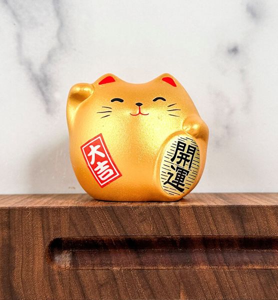 The gold Maneki Neko is especially associated with wealth, success, and financial good luck, making it a popular choice for businesses, home offices, and entryways. Its raised paw is said to beckon opportunity and positive energy, while its compact size allows it to fit comfortably on a desk, shelf, or countertop as a subtle yet meaningful accent.