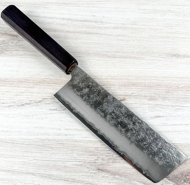 This nakiri is forged with a Silver 3 (Ginsan) stainless steel core, valued for its fine grain structure, excellent edge stability, and ease of sharpening. Properly heat-treated, Silver 3 delivers a crisp, responsive edge while remaining forgiving enough for daily kitchen work. It sharpens cleanly on water stones and offers edge retention that exceeds most entry-level stainless steels.