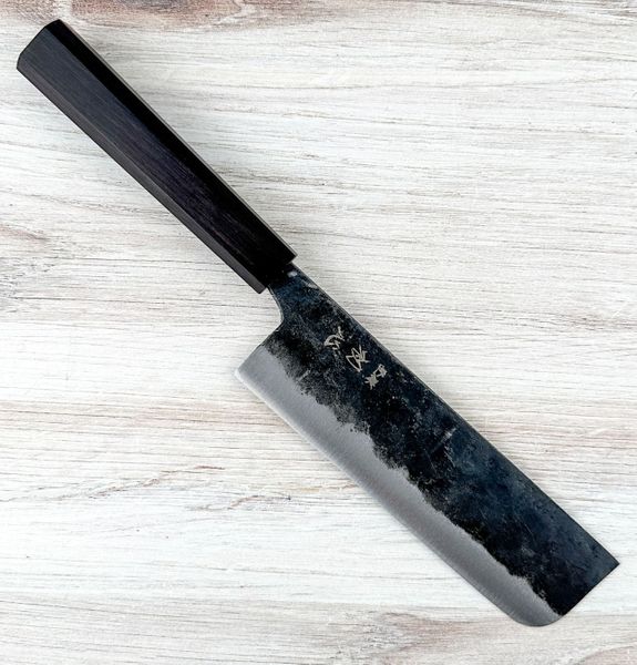 The Hatsukokoro Kurogane Blue #2 series seamlessly blends traditional Japanese craftsmanship with exceptional performance. Handcrafted in Tosa, Japan, each knife features a hammer-forged san mai construction, boasting a razor-sharp Blue #2 steel core encased in soft iron cladding for enhanced durability and balance. The rustic kurouchi blacksmith finish adds timeless elegance. Please note that you need to wipe this knife dry to avoid rusting the carbon steel blade.