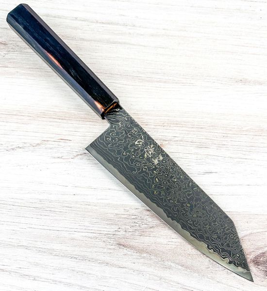The octagonal ebony handle is crafted for comfort and control, giving the knife a refined, traditional Japanese feel that pairs beautifully with the Damascus blade.