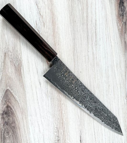 To care for the knife, hand wash only with mild soap and warm water, and dry it immediately after use. Avoid soaking, as excessive moisture may lead to spotting. Use only wooden or plastic cutting boards and steer clear of hard surfaces like glass, stone, or metal. Sharpen with quality whetstones in the 1,000 to 6,000 grit range for best results. Store the knife in a sheath or knife block and avoid cutting bones or frozen items to preserve the fine edge.Maker: Hatsukokoro