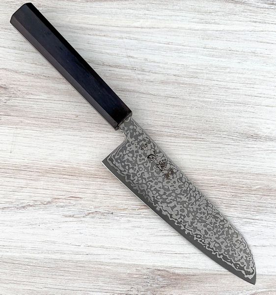 Maker: Hatsukokoro Location: Sakai, Japan Steel: SLD Edge: Double Bevel - 50/50 Handle: Octagonal Ebony Weight: 4.5 oz (128 g) Edge Length: 171 mm Total Length: 310 mm Spine Thickness at Base: 1.5 mm Blade Height: 47 mm