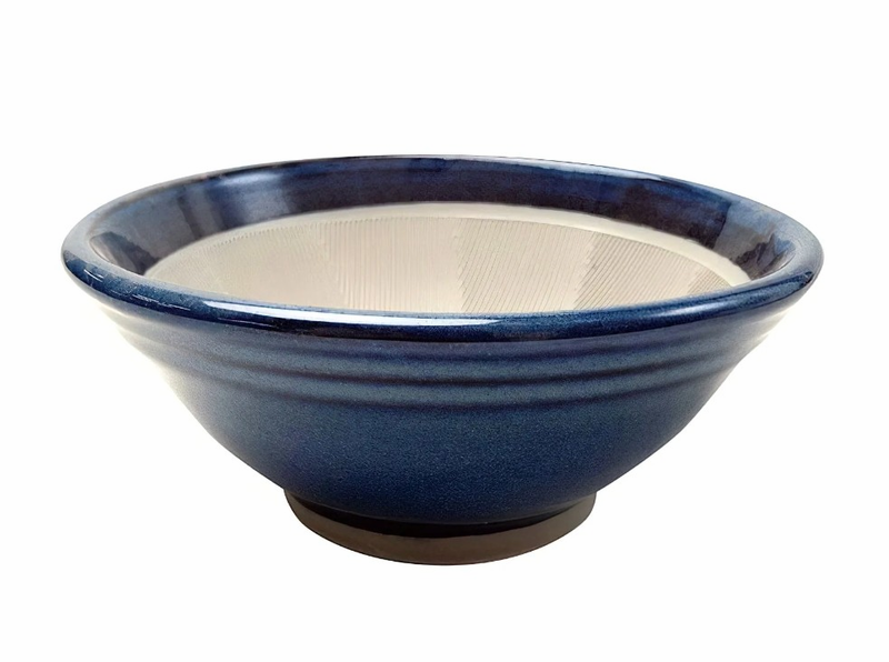 This version includes a non-slip silicone base for added stability and comes finished in an attractive indigo glaze. It also includes a matching wooden surikogi pestle, making it ready to use right out of the box. Each unit is individually boxed, which makes it suitable for retail display or gifting. A simple, effective tool with over 400 years of history behind its design.