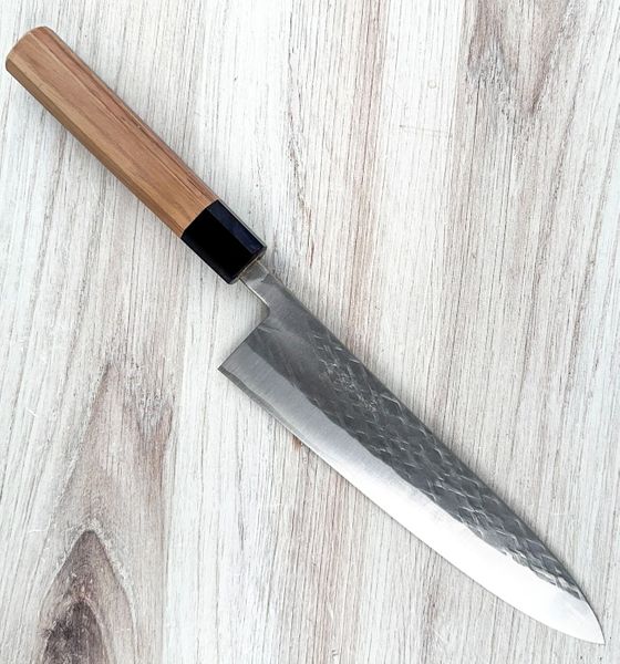 This Kohetsu SLD Gyuto 210mm is brand new but has hammer dents on both sides of the tang. They will not affect the function of the knife. Save $21!