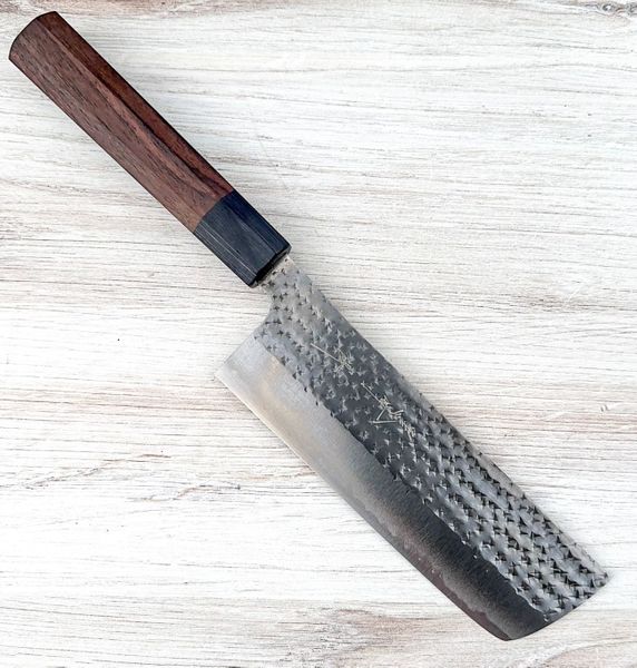 A really nice octagonal handle made of rosewood with a pakka wood ferrule echoes the fine fit and finish of the blade and completes a well made, great performing kitchen knife package.Blacksmith: Yu Kurosaki