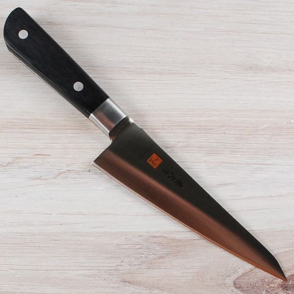 This is MAC's take on the traditional Japanese poultry knife. The honesuki is an indispensable tool for the home chef who prefers to fabricate and process chicken, turkey, and game birds at home. We've found that it's possible to save substantial amounts of money buying chicken and turkey whole and cutting our own pieces for serving, as whole chicken and turkey is often several dollars less expensive per pound. The honesuki's unique triangular blade is ideally suited for the detailed maneuvering required when cutting breasts from the bone, and cutting through the cartilage in wing and leg joints. MAC offers their 25-year warranty against defects in materials and workmanship with this excellent honesuki. As with all the knives we carry, this honesuki is NOT dishwasher safe.Maker: MAC Knife, Inc.