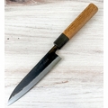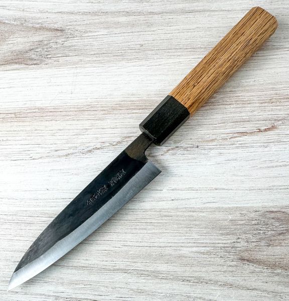 Care Instructions: Hand wash and dry immediately after use. This knife will develop a natural patina over time. Do not place in dishwasher. Use wood or soft plastic cutting boards only. Store in a dry place. Each knife is made by hand, so measurements may vary.Blacksmith: Moritaka San