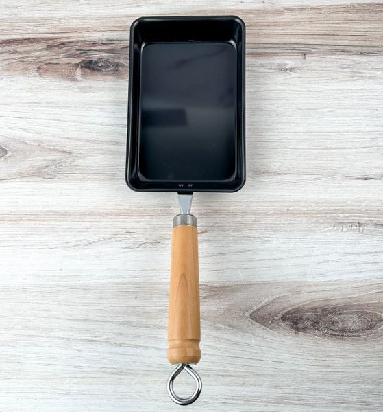 The pan is constructed from iron, which provides excellent heat retention and stable, even cooking once properly preheated. This steady heat helps create consistent browning and smooth egg layers without hot spots. The surface is coated with a temporary silicone layer that protects the iron from rust during shipping and storage. This coating will gradually wear away with use and is not intended to function as a nonstick surface. As the coating disappears, regular cooking oil will season the pan and develop the natural performance that iron cookware is known for.