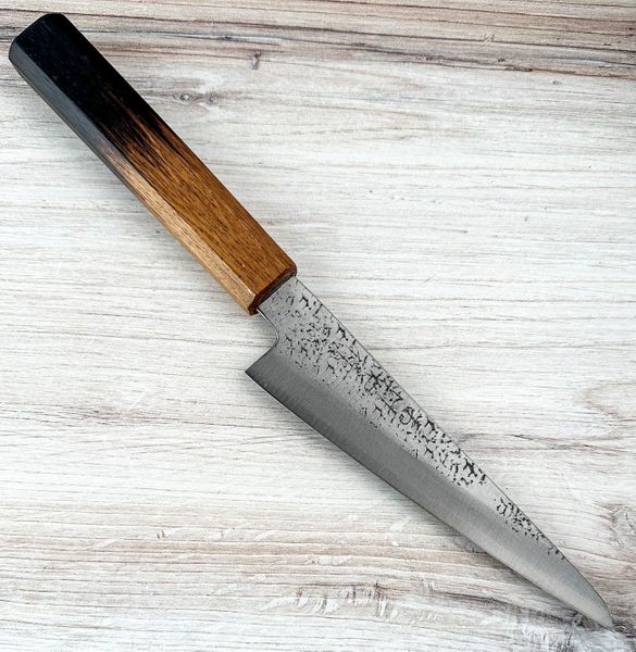 I always recently wanted a Honesuki. This one is awesome. Very stiff, wonderful handle, great fit and finish and a very wide tang. The curved edge and precision point make parting poultry or boning a more exact process. I thought I was good with just my 150mm Petty but I was wrong. Although both 150mm they have very different capabilities.