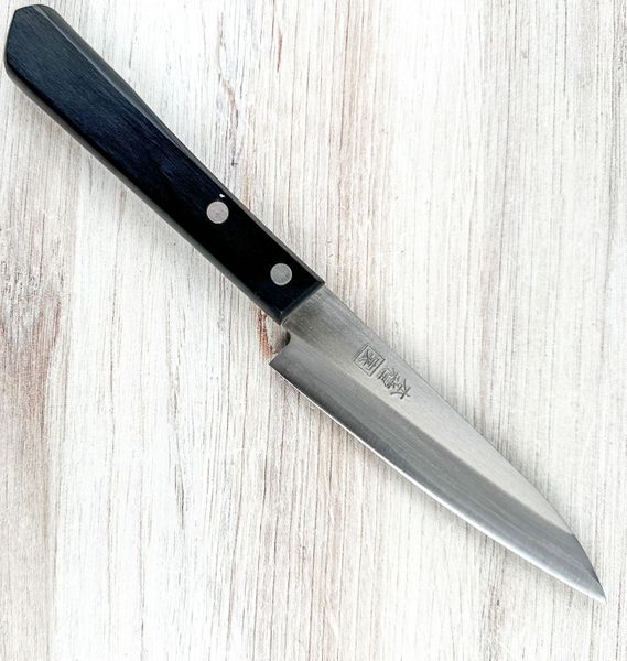 Tabata Blue #2 Petty 110mm. Tabata Hamono is a small blacksmith shop on Tanagashima Island, located south of Kagoshima Prefecture in Kyushu. They make this petty knife with Blue #2 carbon steel and it has soft iron cladding and a kasumi finish. Chefknivestogo is proud to be the first dealer for this company in the USA. We hope you will find something interesting.