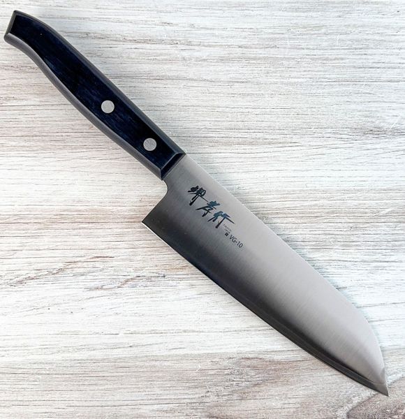 The black pakka wood Western-style handle gives the knife a balanced, secure feel, while the overall size keeps it nimble on the board and well-suited for smaller workspaces. A dependable, versatile santoku that punches well above its price point.