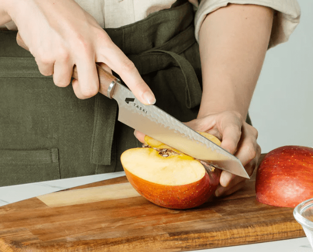 Care Instructions: Hand wash only. Dry immediately after cleaning. Do not use on bones, frozen foods, metal, glass, or stone surfaces. Always use a proper cutting board.Maker: Taski