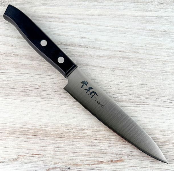 This compact petty knife from the Takayuki Sumire series is the perfect utility blade for precise tasks like trimming, peeling, and detailed prep work. Forged with a VG10 stainless steel core and clad in a warikomi construction, it offers excellent edge retention and corrosion resistance in a slim, easy-to-handle package. A durable black pakka wood handle completes the design, making this an ideal everyday knife for both professional kitchens and home use.