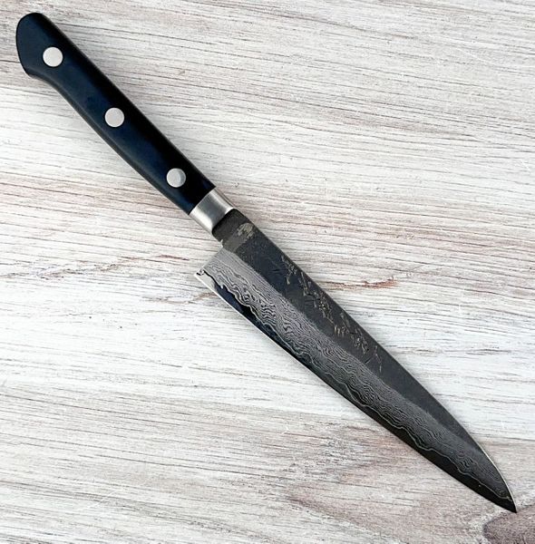 This TOJIRO ATELIER CLASSIC Damascus Petty 150mm has a small flaw in the kurouchi finish that doesn't affect its use. Otherwise brand new. Save $43.00!