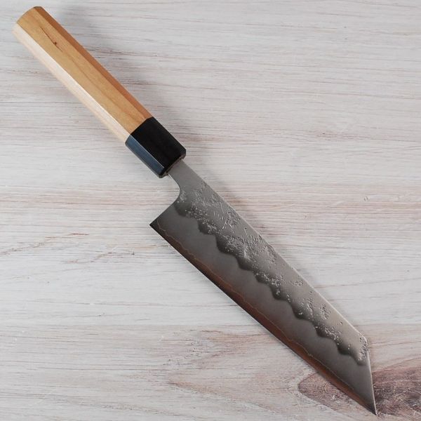 There are a few things that separate good knives from average knives: steel quality, edge grinds, comfortable handles, good fit and finish, and nice packaging all contribute to making a knife that rises to the top. This line hits the mark. The steel used is Ginsan stainless, which is high quality stainless steel, and the finish is called nashiji (translates to "pear skin"). You can see from the photos this knife is a stunner. The details are all looked after too. Our friend Akane san, hand engraved each knife and she also did the beautiful calligraphy for the Yahiko logo on the box. All in all we're thrilled with these knives!Knife Line: Yahiko