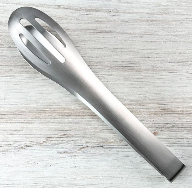 One side of the tong features three drainage slots that allow excess liquid to flow away while gripping food. This makes them especially useful for lifting ingredients from broths, sauces, or dressings. Flip the tongs over and the smooth spoon-shaped side works well for scooping and serving foods with a little liquid. The result is a versatile utensil that is simple, clever, and practical for everyday cooking.